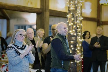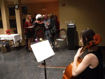 The Lincoln County Republican women put on an elegant and well-attended Christmas Season fund-raising event at the Skidompha Library in Damariscotta. The four star buffet was provided by the group and included hot and cold Hors D’oeuvres, finger foods, and desserts Beer, wine, and non-alcoholic beverages were served as well. Hanna Winchenbach, a very talented young cellist, entertained with several solos. Later in the evening Rick Bennett serenaded the group with songs including political parodies sung to Holly Jolly Christmas, Blue Christmas, and Do You Hear What I Hear. Rick followed up with several traditional beautifully sung Christmas carols and led the group in a very enthusiastic singing of O Come All Ye Faithful, O Little Town of Bethlehem, Silent Night, and ended with a rousing rendition of God Bless America. All present agreed that the stage lost a very talented singer and entertainer when Rick entered politics and are looking forward to next year.