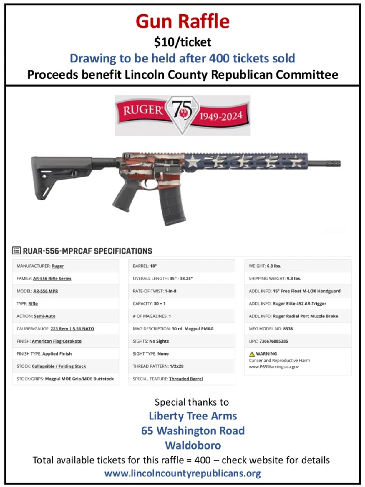 The winning ticket for this beautiful gun was pulled and winner declared on Sunday, December 29th at 2pm at the Cubby Hole in Wiscasset.